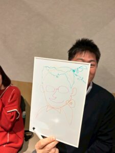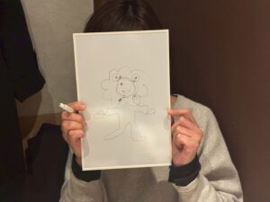 回答者にはお題を伏せておき、3人で協力して、イラストを完成させます。