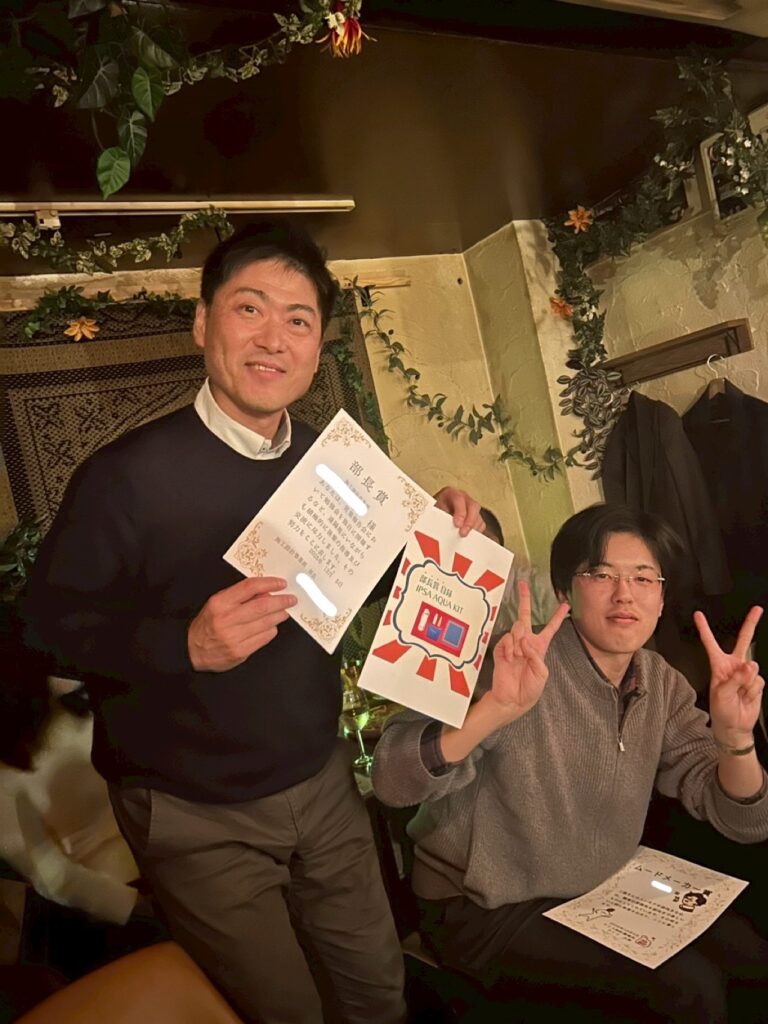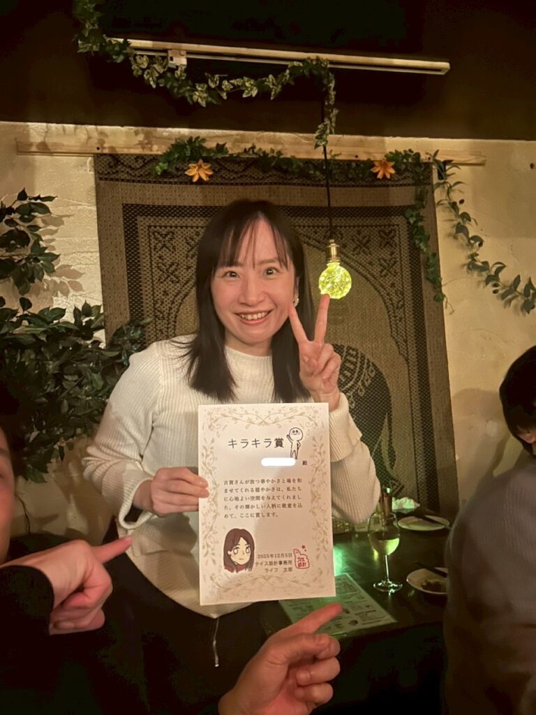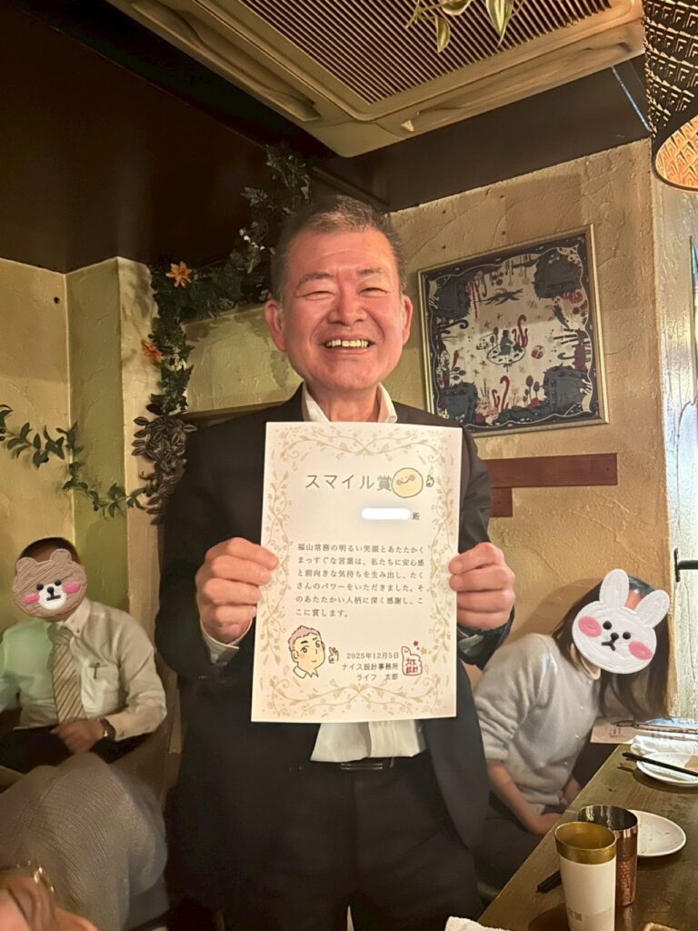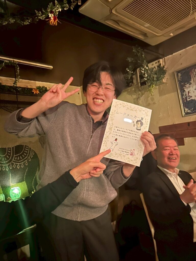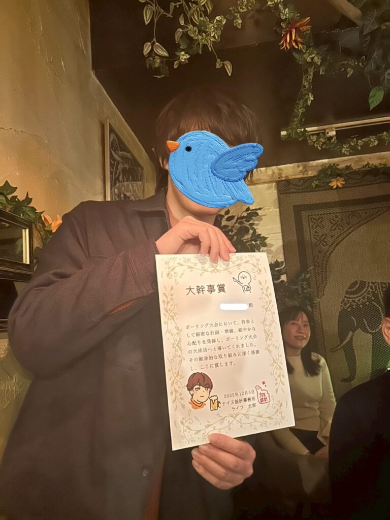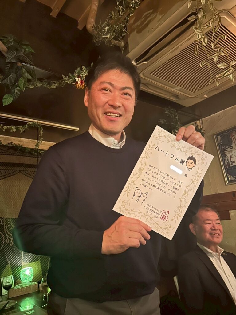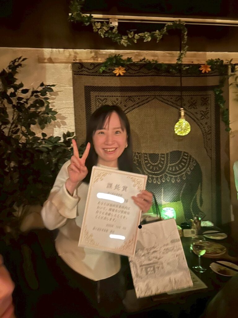 幹事には、皆さんから「今回の忘年会がんばった大賞」が送られました![]()